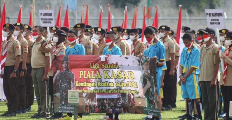 SMARTNEWS.ID – Sebanyak 11 kontingen santri binaan Kodim 0410/KBL mengikuti seleksi Liga Santri PSSI Piala KASAD Tahun 2022 Tingkat Provinsi Lampung, di Stadion Pahoman, Bandar Lampung, Senin, 22 Agustus 2022.