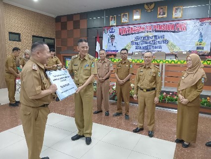 Pj. Bupati Pringsewu Adi Erlansyah menyerahkan SK purna tugas secara simbolis kepada 25 PNS. Selain itu juga, dilaksankan penyerahan SK purna tugas kepada Staf Ahli Bupati Pringsewu Bidang Perekonomian, Keuangan dan Pembangunan Drs.Samsir Kasim, M.Pd.I. yang juga memasuki Batas Usia Pensiun (BUP) per 1 September 2023.