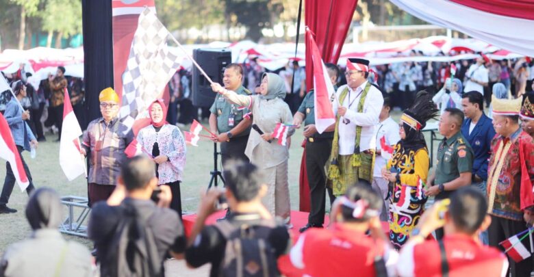 Kegiatan juga dimeriahkan para peserta yang mengenakan atribut pakaian nasional, seperti pakaian adat, batik, dan baju perjuangan, menambah suasana kebersamaan dan keberagaman.