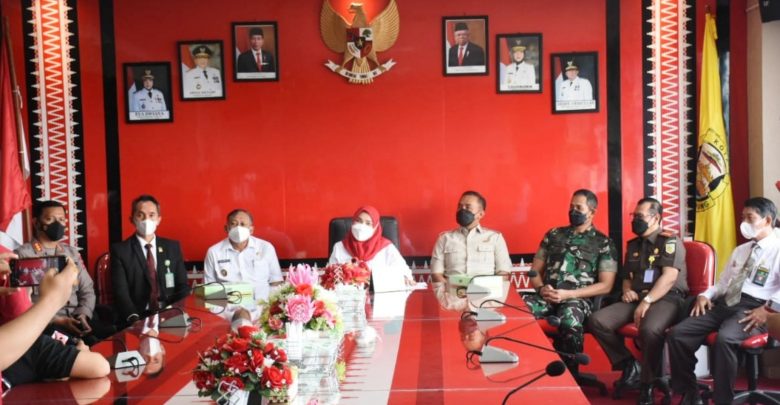 Wali Kota Bandar Lampung Eva Dwiana (tengah) bersama Forkopimda, saat jumpa pers dengan awak media terkait kesiapan APEKSI, di ruang rapat wali kota, Rabu (25/5/2022). ISTIMEWA