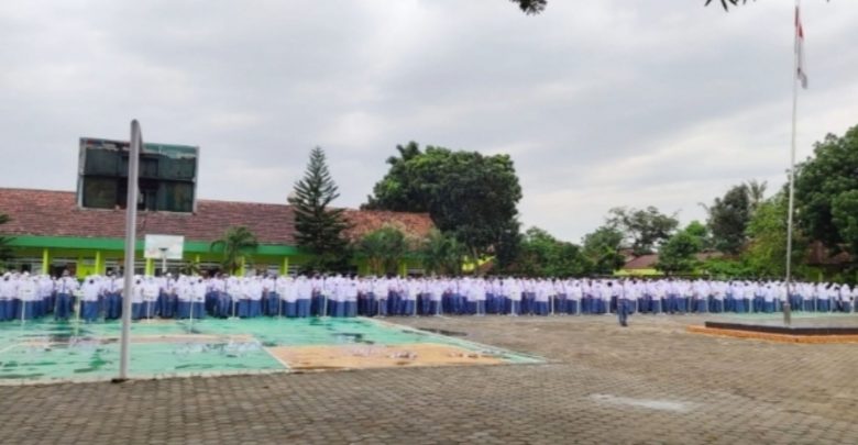 Para siswa MAN 1 Bandar Lampung saat mengikuti upacara bendera sebelum mengikuti PAS, di lapangan sekolah setempat, Senin (30/5/2022). DOK MAN 1 BANDAR LAMPUNG