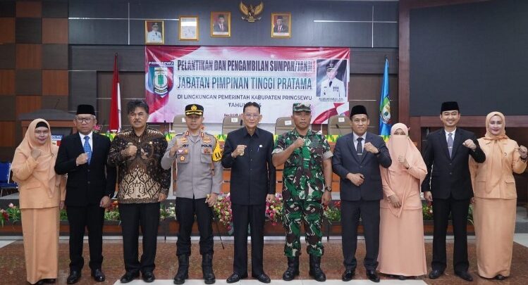 SMARTNEWS.ID — Pj.Bupati Pringsewu Adi Erlansyah melantik 3 orang pejabat lulus seleksi terbuka Jabatan Pimpinan Tinggi Pratama (JPTP), di lingkungan Pemkab Pringsewu yang dilaksanakan pada 2023 lalu. Dimana seleksi jabatan tersebut, sebagai salah satu upaya untuk kemajuan pembangunan dan peningkatan Sumber Daya Manusia (SDM) dilingkungan Pemkab Pringsewu. Sabtu, 3 Februari 2023