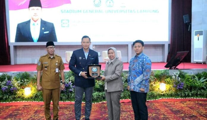 SMARTNEWS.ID – Universitas Lampung (Unila) bersama BEM-U KBM Unila menggelar stadium general bersama Dr. Agus Harimurti Yudhoyono, M.Sc., M.P.A., M.A., (AHY) Menteri Koordinator Bidang Infrastruktur dan Pembangunan Kewilayahan, dengan tema berjudul “Sinergi dan Kolaborasi untuk Masa Depan Indonesia”, pada Selasa, 14 Oktober 2025, di Gedung Serbaguna Unila.