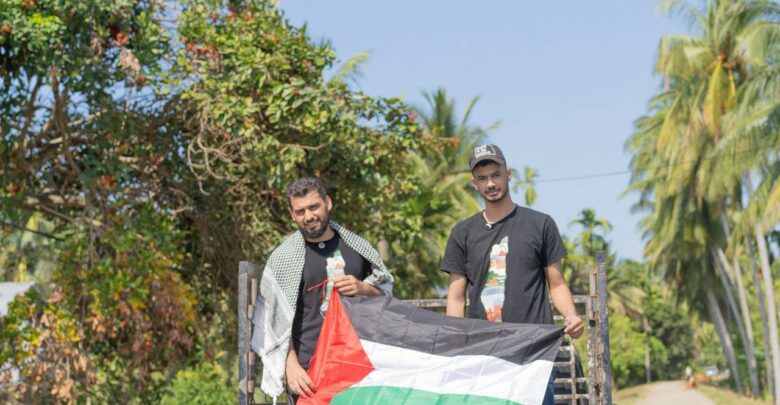 Raed bersama rekannya, Imran, mahasiswa Universitas Hasanuddin. Mereka menyalurkan berbagai bentuk bantuan yang berasal dari Brand Pasar Palestina dan Majelis Ta’lim Baitussyakirin.
