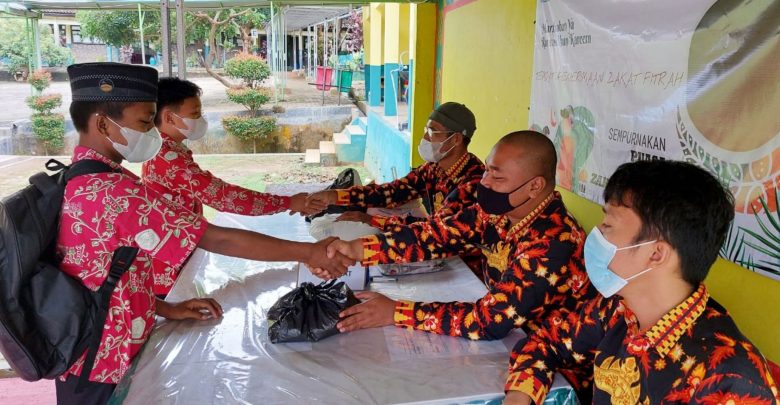 Panitia zakat fitrah SMPN 14 Bandar Lampung, saat menerima zakat dari sejumlah siswa sekolah setempat, Kamis (21/4/2022). DOK SMPN 14 BANDAR LAMPUNG