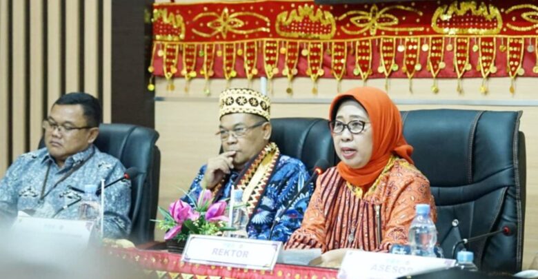 Rektor Unila Prof. Dr. Ir. Lusmeilia Afriani, D.E.A., IPM., ASEAN Eng., membuka Asesmen Lapangan Banding ini di Aula Dekanat FKIP kampus setempat, Jumat pagi, 8 Maret 2024.