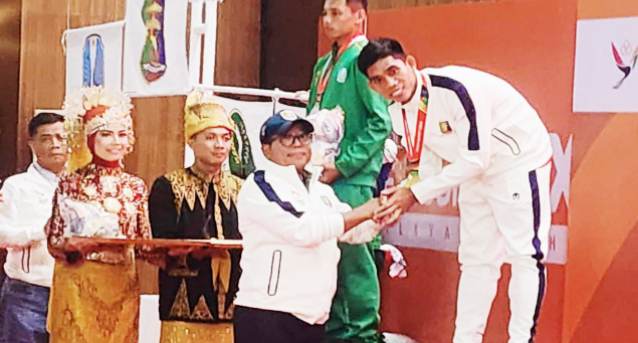SMARTNEWS.ID – Abdul Muis berhasil mempersembahkan medali emas kesembilan bagi Kontingen Lampung, setelah menang knock out (KO) atas atlet Jawa Timur, pada Final Cabang Olahraga Muaythai, Pekan Olahraga Nasional (PON) XXI Aceh-Sumut 2024, di Gedung Bale Meuseuraya Aceh (BMA) Kota Banda Aceh, Selasa, 10 September 2024.