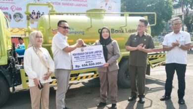 Penyaluran bantuan perlengkapan sekolah yang dipusatkan di SMP Negeri 27 Bandar Lampung, di Kelurahan Sukamaju, Kecamatan Telukbetung Timur, secara simbolis diserahkan oleh Wali Kota Bandar Lampung, Hj. Eva Dwiana.