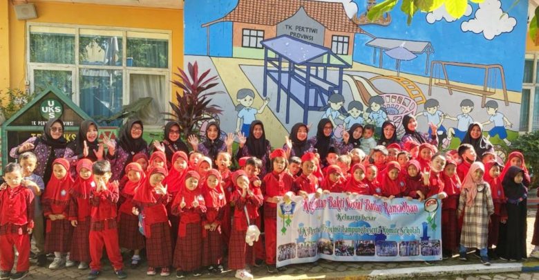 Kunjungan yang dipimpin langsung Kepala TK Pertiwi Provinsi Lampung, Paswani, S.Pd, itu dalam rangka memberikan bantuan berupa kebutuhan bahak pokok makanan dan santunan kepada penghuni panti asuhan.