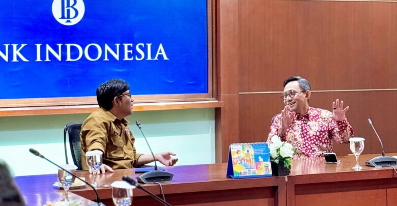 Kepala BI Lampung Junanto Herdiawan (kanan), berbincang dengan Ketua Taring Lampung Yusmart DS, di kantor BI, Jumat, 7 Februari 2025. DOK TARING