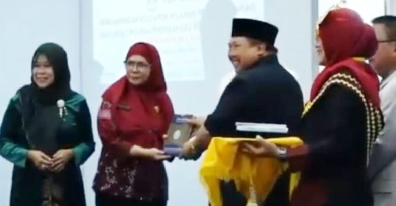 Kepala Dinas Pendidikan dan Kebudayaan Bandar Lampung, Hj. Eka Afriana, S.Pd, didampingi Kepala BGP Lampung, Dra. Suriatanti Supriyadi, M.Si, saat menerima cendera mata dari Ketua Yayasan Baitul Jannah Ir. H. Sugirianto, M.M, pada kegiatan Festival Panen Hasil Belajar Pendidikan CGP Angkatan 7 Kota Bandar Lampung, di Baitul Jannah Islamic School, Sabtu, 8 Juli 2023. ISTIMEWA