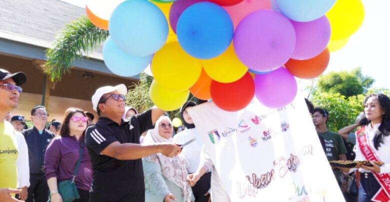 SMARTNEWS.ID – Penjabat (Pj) Gubernur Lampung, Samsudin melakukan pelepasan balon ke udara sebagai tanda secara resmi dibukanya Festival Nemui Nyimah Provinsi Lampung tahun 2024, di PKK Agropark, Sabah Balau, Minggu, 27 Oktober 2024.