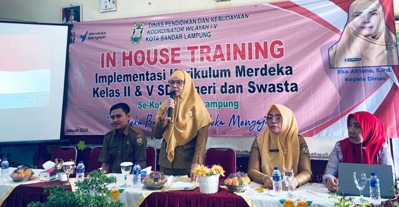 SMARTNEWS.ID – Kepala Dinas Pendidikan dan Kebudayaan Kota Bandar Lampung Hj. Eka Afriana, S.Pd, membuka in house training (IHT), di SDN 1 Pesawahan, Kecamatan Telukbetung Selatan, Selasa, 23 Januari 2024.
