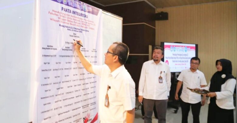 SMARTNEWS.ID – Fakultas Teknik (FT) Universitas Lampung (Unila) menggelar pencanangan Zona Integritas (ZI) menuju Wilayah Bebas dari Korupsi (WBK), Wilayah Birokrasi Bersih dan Melayani (WBBM), di Aula Gedung Dekanat lantai dua FT Unila.Rabu pagi, 21 Februari 2024.