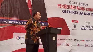 Ketua KPK Firli Bahuri, saat orasi ilmiah tentang pemberantasan korupsi pada pengukuhan pengurus JMSI Lampung, di Hotel Novotel Lampung, Bandar…