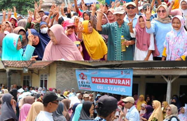 SMARTNEWS.ID — Untuk membantu meringankan kebutuhan masyarakat, Pasangan Calon (Paslon) Bupati Lampung Selatan dengan nomor urut 2 (Dua) EGI-Syaiful, menggelar pasar murah di Kecamatan Palas, Lampung Selatan. Pasar murah yang dilaksanakan itu dihadiri oleh ribuan masyarakat setempat. Senin, 7 Oktober 2024
