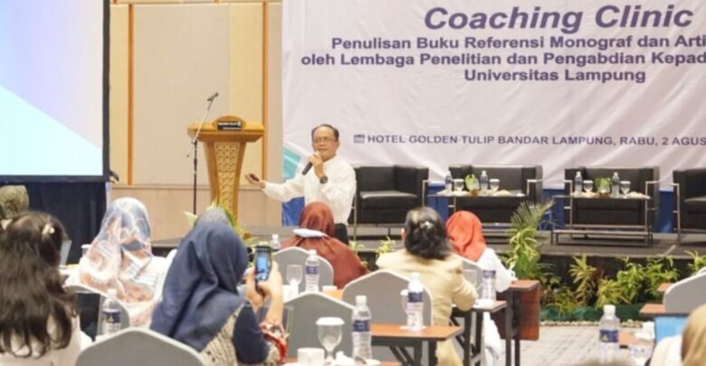 SMARTNEWS.ID – Lembaga Penelitian dan Pengabdian Masyarakat (LPPM) Universitas Lampung (Unila) menyelenggarakan Coaching Clinic Penulisan Buku Referensi, Monograf, dan Artikel ilmiah, di Hotel Golden Tulip, Bandar Lampung, Rabu, 2 Agustus 2023.