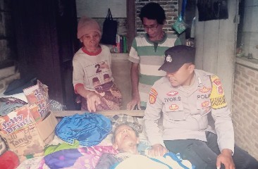 Babinkamtibmas Bripka Iyon Sugiyono melihat langsung pasangan lansia Kemis dan Ngatemi warga Dusun Karya, Desa Karya Tunggal, Kecamatan Katibung, Lampung Selatan, yang bertahan hidup dengan mengandalkan jualan kue keliling. Jumat (6/1/2023). FHOTO : SMARTNEWS.ID/ACENG