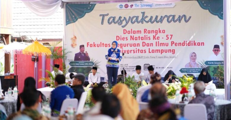 SMARTNEWS.ID – Fakultas Keguruan dan Ilmu Pendidikan (FKIP) Universitas Lampung (Unila) menyelenggarakan tasyakuran dalam rangka Dies Natalis ke-57 pada Kamis, 2 Januari 2025. Kegiatan berlangsung di Laboratorium Budaya (Rumah Adat Lampung) FKIP Unila dan mengusung tema “Bersinergi Mewujudkan FKIP Unila yang Unggul dan Adaptif.”