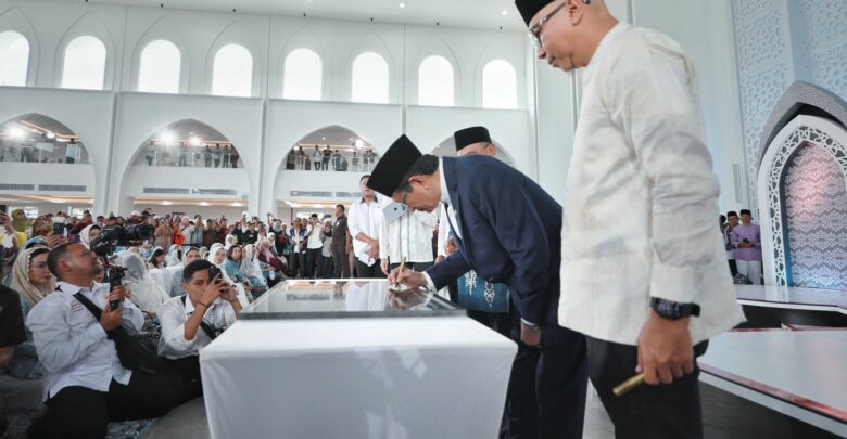“Masjid ini mampu menampung 12 ribu jamaah, memiliki ballroom berkapasitas 1.200 orang, ruang belajar Alquran, perpustakaan, serta area UMKM,” jelasnya.