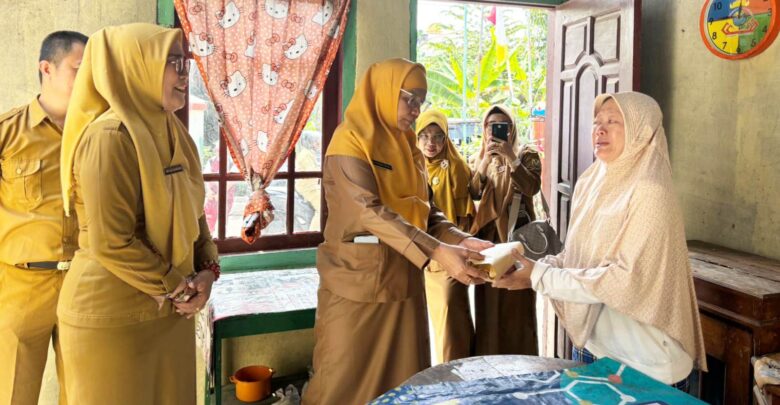 Bantuan berupa uang tunai yang diserahkan langsung Kepala Disdikbud Hj. Eka Afriana, S.Pd, didampingi kepala SMPN 22 Sriyati Djamsari, S.Pd., M.M, disambut haru oleh ibunda Sarhan, Sumarni.