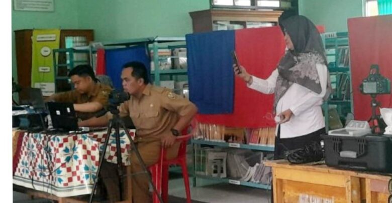 Perekaman yang dilakukan petugas dari Dinas Kependudukan dan Catatan Sipil Kota Bandar Lampung untuk mempercepatan pelayanan administrasi kependudukan dan pencatatan sipil.