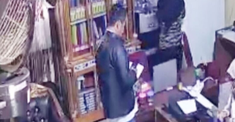 Aksi wali murid saat merekam guru SD Negeri 1 Way Laga yang diduga dengan sengaja ingin menjebak pihak sekolah. TANGKAPAN LAYAR CCTV
