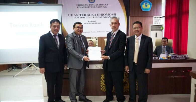 Ia menekankan, disertasi ini relevan untuk menjawab tantangan pengelolaan lingkungan di Provinsi Lampung, khususnya terkait DAS Sekampung.