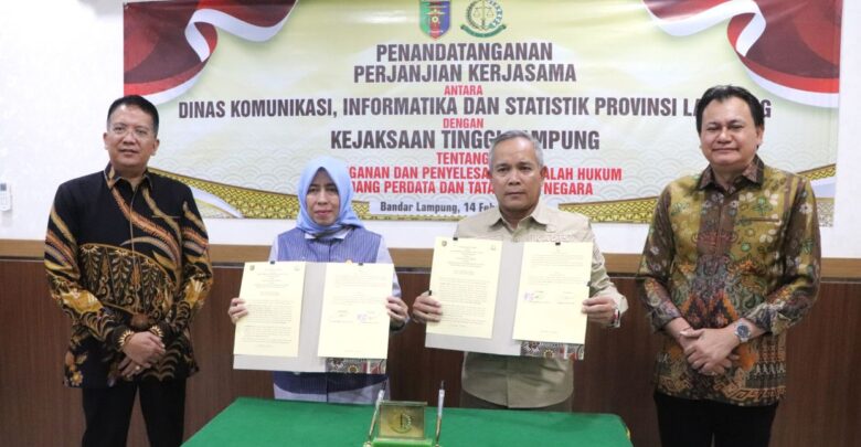 SMARTNEWS.ID – Kepala Dinas Komunikasi, Informatika, dan Statistik (Diskominfotik) Provinsi Lampung, Achmad Saefullah, menandatangani Perjanjian Kerja Sama antara Dinas Kominfotik Provinsi Lampung dengan Kejaksaan Tinggi (Kejati) Lampung, di Ruang Video Conference Kejati Lampung, Jumat, 14 Februari 2025.