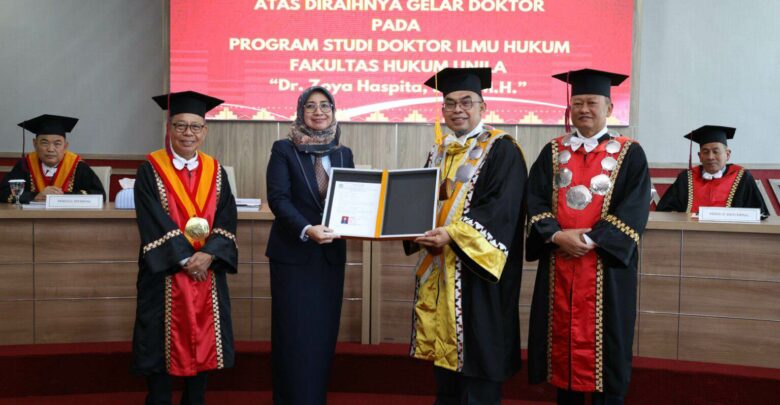 SMARTNEWS.ID – Universitas Lampung (Unila) kembali mempertegas perannya dalam mendorong kemajuan hukum nasional melalui pelaksanaan Ujian Terbuka Promosi Doktor Ilmu Hukum yang digelar Jumat, 30 Januari 2026, di Ruang Ujian Terbuka Gedung B Fakultas Hukum Unila.