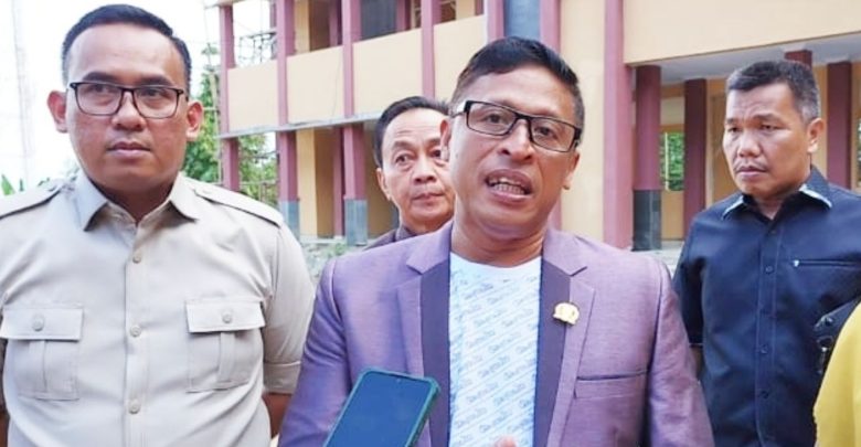 Ketua DPRD Bandar Lampung Wiyadi (tengah) didampingi ketua dan anggota Komisi IV DPRD, Rizaldi Adrian (kiri) dan Ali Wardana (kanan), saat diwawancarai awak media terkait perkembangan pembangunan RKB SMPN 40 Bandar Lampung, di sekolah setempat, Selasa, 23 Mei 2023. ISTIMEWA