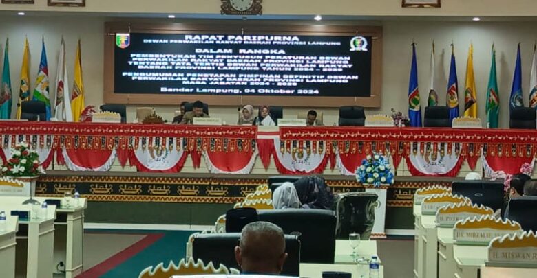 Paripurna ini juga membahas Pembentukan tim penyusun rancangan peraturan DPRD Provinsi Lampung tentang tata tertib DPRD Provinsi Lampung 2024-2029.