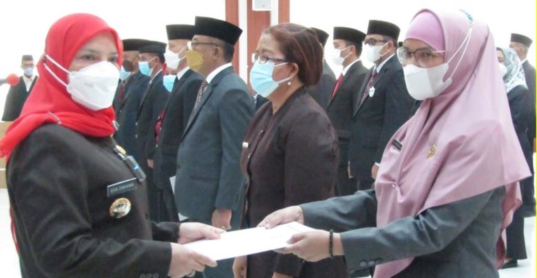 SMARTNEWS.ID – Wali Kota Bandar Lampung Eva Dwiana, mengukuhkan Eka Afriana sebagai Pelaksana Tugas (Plt) Kepala Dinas dan Kebudayaan Bandar Lampung, di Gedung Semergow Kantor Pemerintah Kota Bandar Lampung, Selasa (5/10/2021).