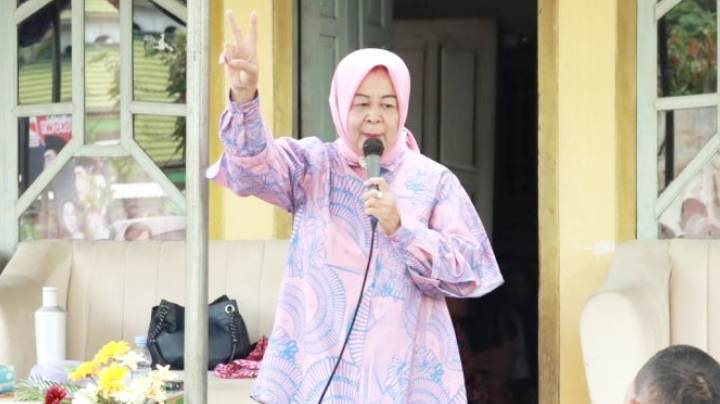Di setiap kunjungan ke daerah, Elly Wahyuni selalu meminta dukungan dari masyarakat Lampung untuk kemenangan Prabowo-Gibran.