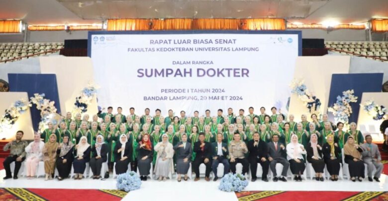 SMARTNEWS.ID – Suasa Ramadan 1445 menjadi lebih spesial bagi dokter muda Fakultas Kedokteran (FK) Universitas Lampung (Unila) karena pada Rabu pagi, 20 Maret 2024, bertepatan dengan 9 Ramadan 1445 Hijriah, Senat FK Unila menggelar Rapat Luar Biasa dalam rangka prosesi sumpah dokter periode I tahun 2024 di gedung serbaguna kampus setempat.