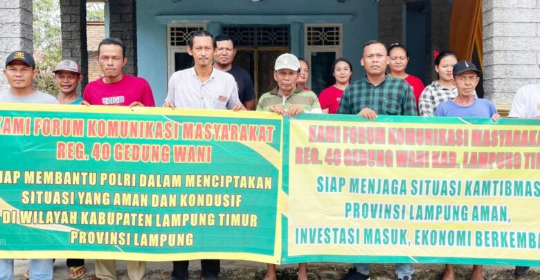SMARTNEWS.ID – Untuk menjaga situasi keamanan dan ketertiban khususnya Forum Komunikasi Masyarakat Register 40 Gedong Wani Kabupaten Lampung Timur Berkomitmen siap mendukung dan membantu pihak keamanan (Polri) dalam menciptakan suasana Kamtibmas yang aman dan kondusif di wilayah Provinsi Lampung, Sabtu, 8 Juli 2023.