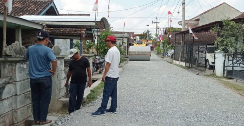 Kepala Desa Candimas bersama tim Unit Pelaksana Teknis Daerah (UPTD) melakukan pemantauan terhadap pelaksanaan pembangunan infrastruktur jalan tersebut.