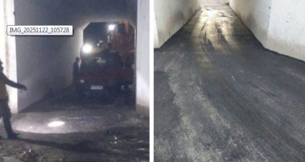 Kerusakan jalan tepat di bawah jembatan rel kereta api yang diperbaiki pada Jumat malam, 21 November 2025, diapresiasi warga. Bahkan, warga menyebut langkah tersebut bukti nyata pemerintah peduli masyarakat..