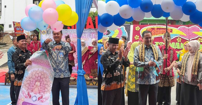 Kepala Disdikbud Lampung Thomas Amirico, S.STP., M.H didampingi Kepala SMAN 1 Bandar Lampung Drs. Suharto, M.Pd, melepas balon ke udara sebagai tanda dibukanya Grantha Fest 41, Kamis, 22 Mei 2025. ISTIMEWA