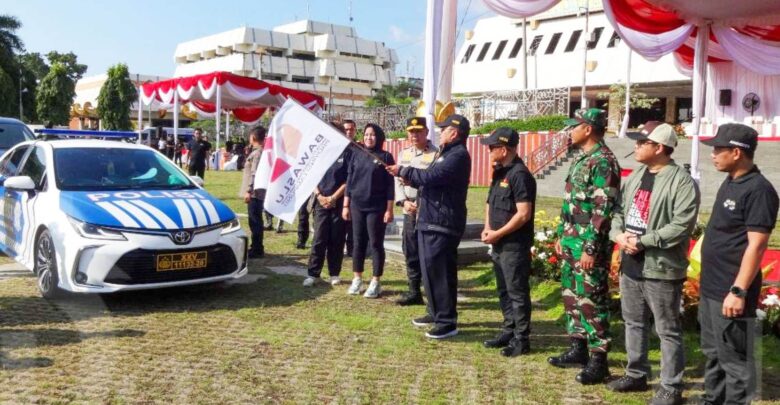 Gubernur Arinal melepas peserta konvoi patroli pengawasan masa tenang dalam rangka menertibkan alat peraga kampanye (APK), di Lapangan Korpri Komplek Kantor Gubernur Lampung, Minggu, 11 Februari 2024. ISTIMEWA