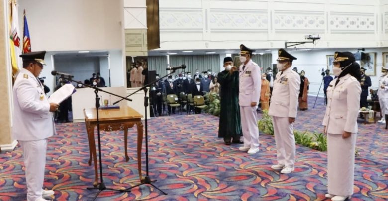 SMARTNEWS.ID – Gubernur Lampung Arinal Djunaidi, melantik dan mengambil sumpah jabatan tiga Penjabat (Pj) Bupati untuk Kabupaten Pringsewu, Mesuji, dan Tulangbawang Barat, di Balai Keratun, Kompleks Perkantoran Gubernur Lampung, Minggu (22/5/2022).