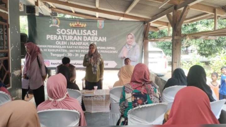 SMARTNEWS.ID – Hanifah anggota DPRD Provinsi Lampung menggelar sosialisasi peraturan daerah nomor 1 tahun 2016 tentang rembug desa atau pekon.