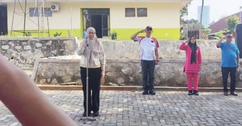 Kepala Disdikbud Bandar Lampung, Hj. Eka Afriana, S.Pd (kiri), saat menjadi pembina upacara pada Jumat, 28 April 2023. ISTIMEWA