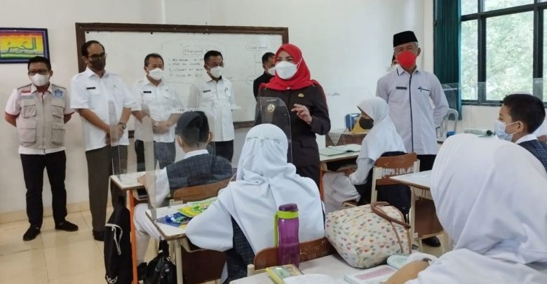Pada hari pertama PTM 100 persen ini, Wali Kota Bandar Lampung Hj. Eva Dwiana, memantau jalannya pelaksanaan PTM di sejumlah satuan pendidikan di Kota Tapis Berseri.