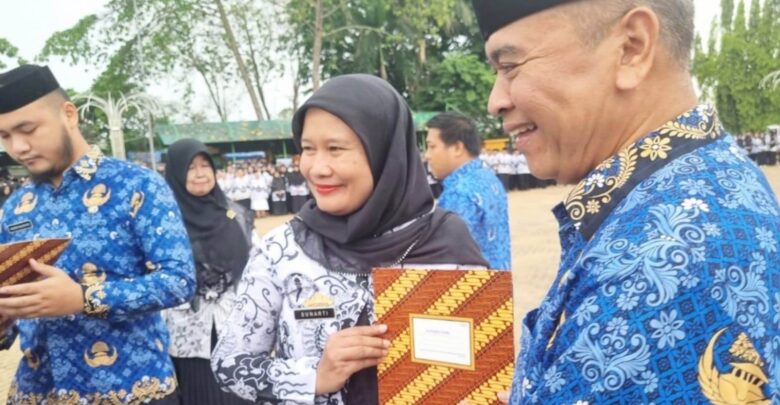Penghargaan ini diberikan kepada 25 tenaga pendidik dari mulai jenjang PAUD sampai dengan jenjang SMA dalam upacara yang digelar di Lapangan Samber, Kota Metro, Rabu, 29 November 2023. Sebagai pembina pada upacara Sekretaris Daerah Kota Metro sekaligus juga Ketua Korpri Kota Metro, Ir. Bangkit Haryo Utomo, M.T.
