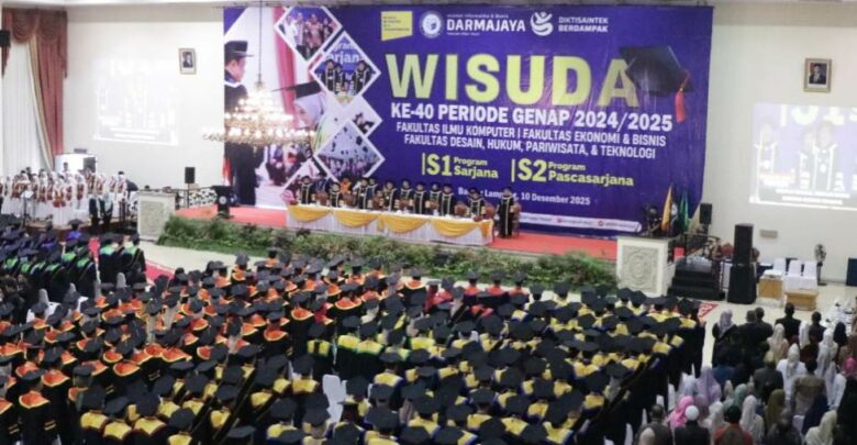 SMARTNEWS.ID – Institut Informatika dan Bisnis (IIB) Darmajaya menggelar wisuda ke-40 dengan total terdapat 451 lulusan menyelesaikan studi jenjang strata satu (S1) dan jenjang strata dua (S2) bertempat di Gedung Bagas Raya pada Rabu, 10 Desember 2025.