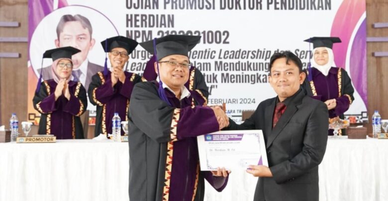 Promovendus Herdian dinyatakan lulus dan berhak menyandang gelar doktor setelah mempresentasikan disertasi berjudul “Urgensi Authentic Leadership dan Servant Leadership dalam Mendukung Teacher Followship untuk Meningkatkan Teacher Work Engagement”.
