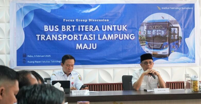 Persiapan pengoperasian Smart BRT Itera dibahas dalam Focus Group Discussion (FGD) bertajuk “Bus BRT Itera untuk Transportasi Lampung Maju” yang digelar di Ruang Rapat Gedung C Itera, Rabu, 4 Februari 2026. FGD tersebut dihadiri Rektor Itera Prof. Dr. I Nyoman Pugeg Aryantha, Gubernur Lampung yang diwakili Sekretaris Daerah Provinsi Lampung Dr. Marindo Kurniawan, S.T., M.M., Kepala Balai Pengelola Transportasi Darat (BPTD) Kelas II Lampung, serta perwakilan Bappeda, BPKAD, Dinas Perhubungan Provinsi Lampung, dan pemangku kepentingan terkait.