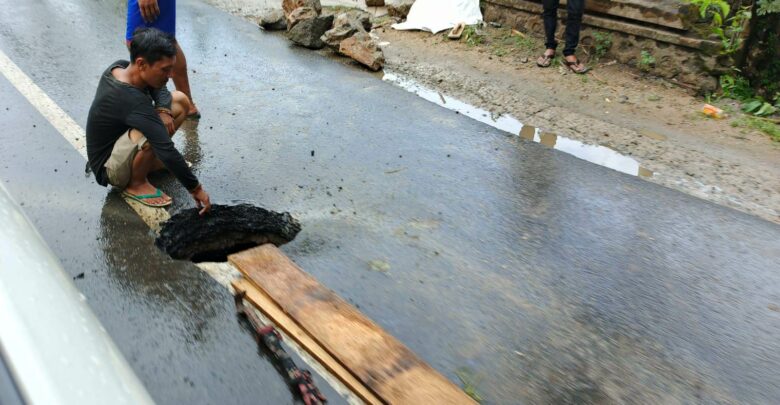 Dijelaskan warga, hujan lebat yang mengguyur lokasi tersebut, diduga menjadi penyebab amblasnya gorong-gorong. “Hujan lebat yang terjadi sejak dini hari tadi, dititik gorong-gorong yang amblas kini ambrol dan kini terdapat lubang menganga”, jelasnya.