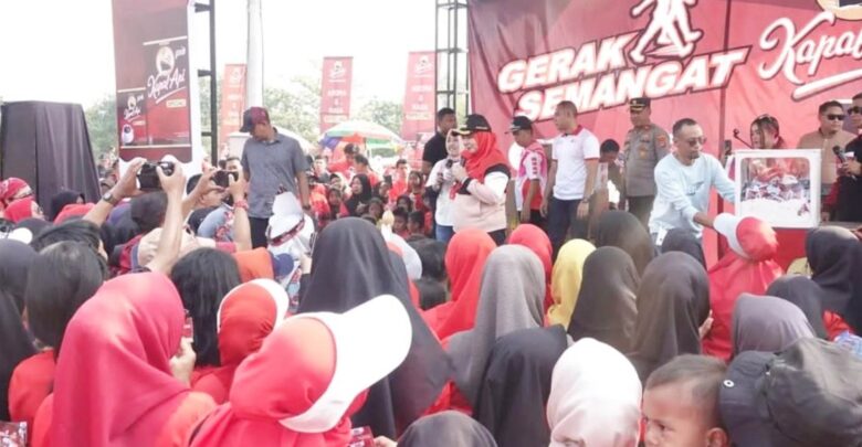 SMARTNEWS.ID – Wali Kota Bandar Lampung, Eva Dwiana, turut serta dalam kegiatan jalan sehat Gerak Semangat Kopi Kapal Api, di Kecamatan Telukbetung Timur, Minggu, 8 Oktober 2023.